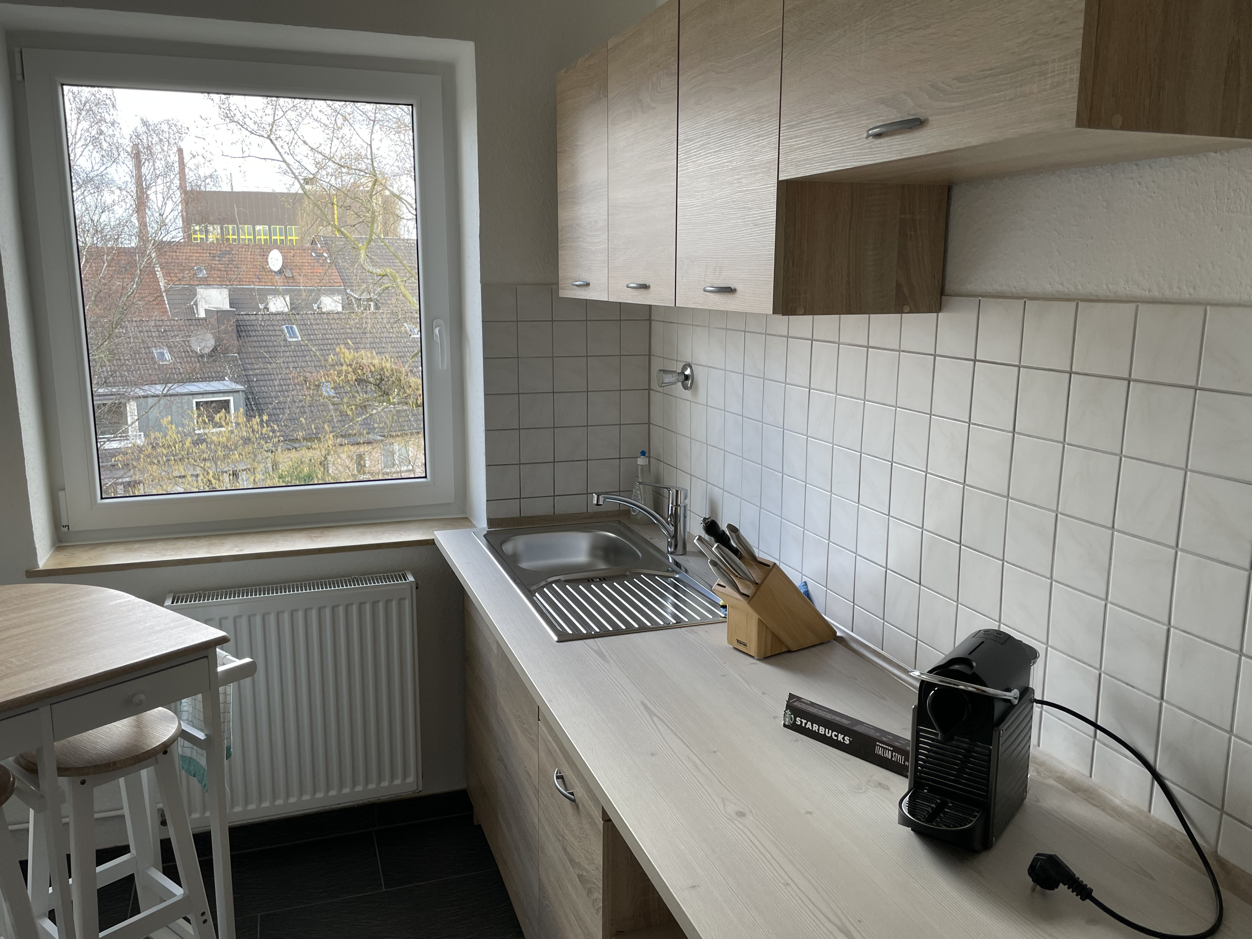 Die Wohnung befindet sich in der ersten Etage und ist voll ausgestattet und möbliert.