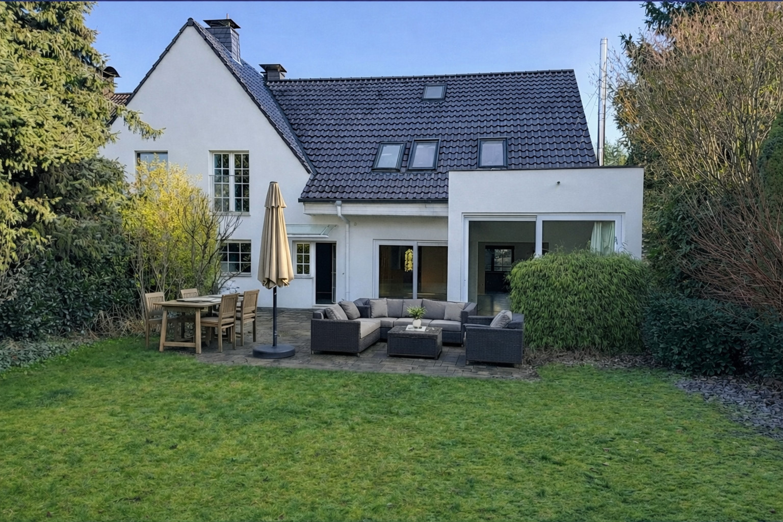 Diese gepflegte und großzügige Doppelhaushälfte überzeugt durch ihre ruhige Wohnlage, eine hochwertige Raumaufteilung sowie ein ca. 658 m² großes Grundstück mit parkähnlichem, nahezu uneinsehbarem Garten. Das Haus bietet mit ca. 198 m² Wohnfläche viel Platz für Familien mit gehobenen Ansprüchen.