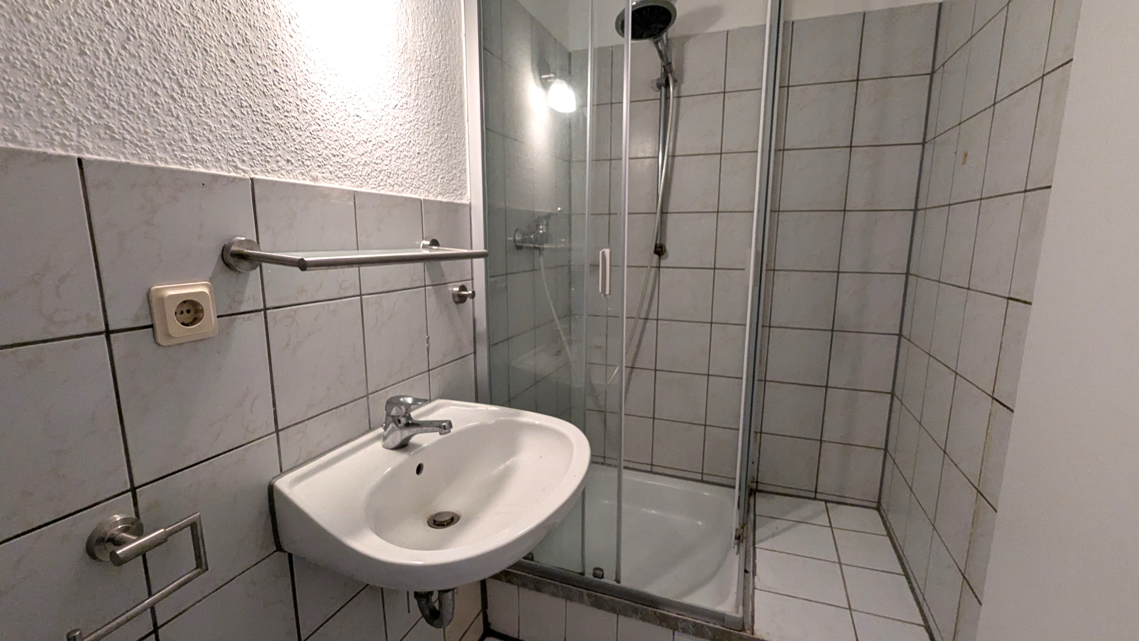 Die größere Wohnung bietet 3 Räume, Küche mit Zugang zum Südbalkon und ein Badezimmer mit Dusche. Das Apartment mit modernisiertem Bad (2015) ergänzt ideal als Home-Office, Gästebereich oder zur Vermietung.